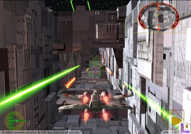 Lo verdaderamente atractivo es la recreación perfecta de diversos acontecimientos, empezando por la propia estrella de la muerte, que sin más preámbulo nos la encontramos al comenzar. No estamos ya ante gráficos poligonales carentes de textura como en la recreativa clásica, ni ante los titubeos de las texturas de N64, sino ante un producto pulido, perfecto técnicamente, que aúna el frenetismo del arcade con una elemental simulación de vuelo, alguna dosis de estrategia, el espectáculo audiovisual, y todo con un equilibrio de dificultad envidiable, si bien a veces puede sacarnos de nuestras casillas. Instantes como (de nuevo) la batalla de Endor tienen una intensidad sin precedentes: en determinado momento veremos cómo se abalanzan ante nosotros, literalmente, cientos de cazas, alcanzando inmediatamente el status de “experiencia videojueguil a recordar de por vida”.